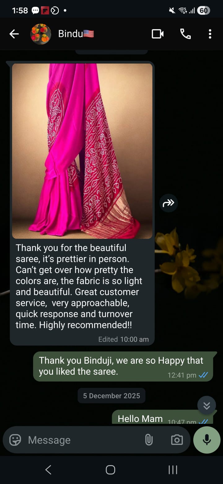 Indulge in the timeless artistry of Kutch with ourΒ Handmade Single Dani Bandhej Saree. Crafted from the finestΒ Pure Gajji Silk, this saree is a celebration of heritage, patience, and vibrant Indian craftsmanship.