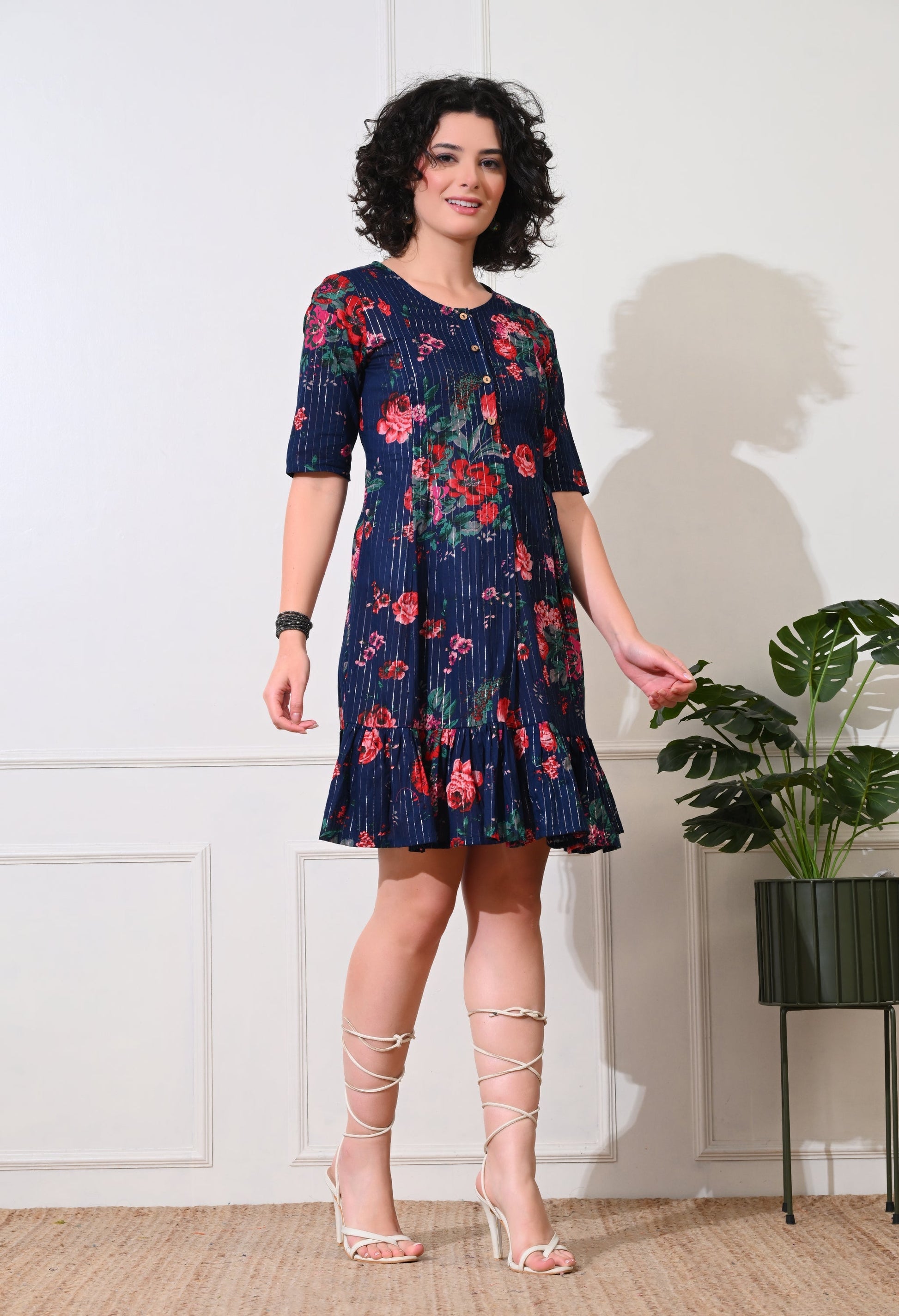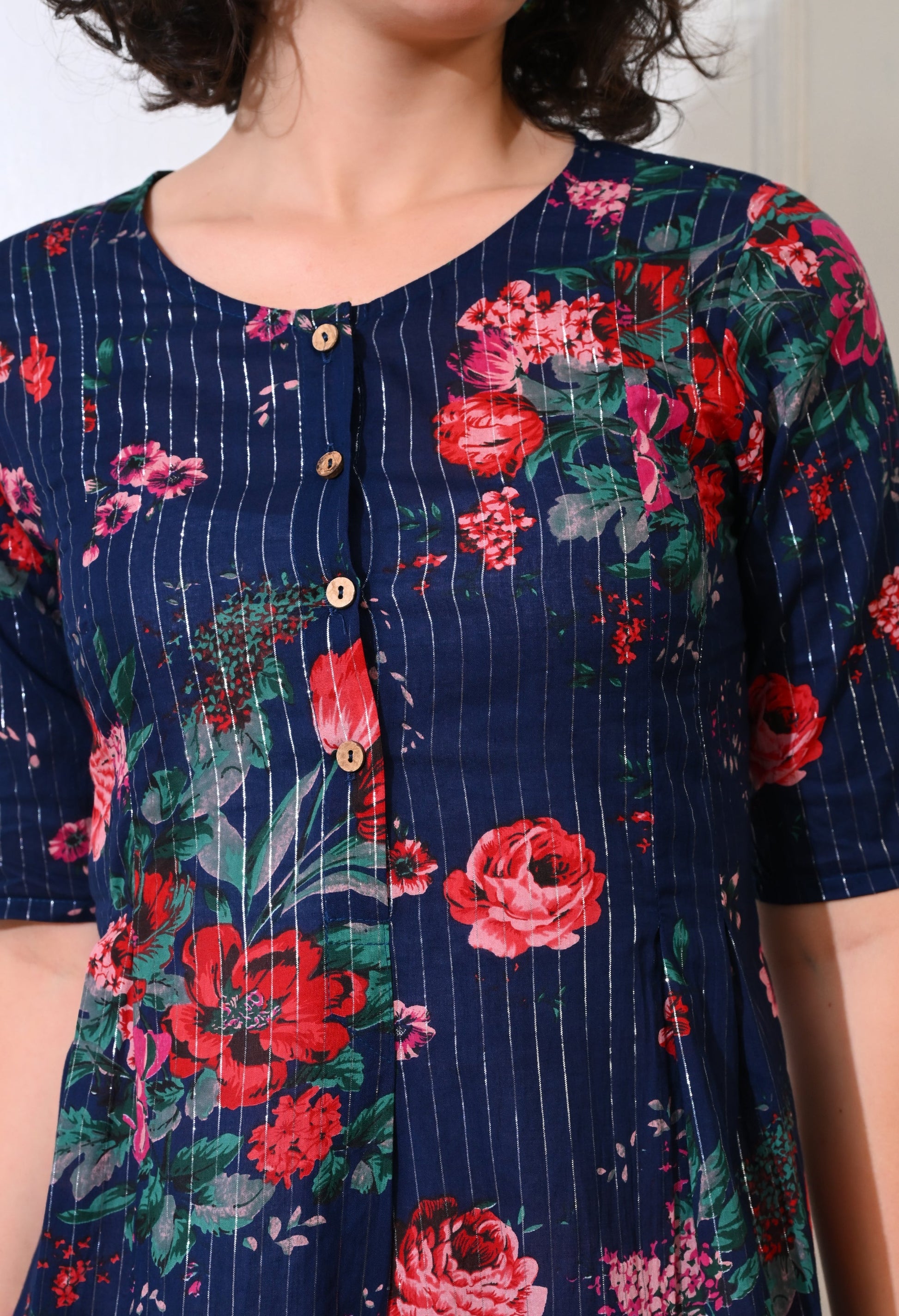 - Description: Cotton Navy Blue Shirt dress with front button closure,gathers and pleated details will Make you look Subtle and outstanding.