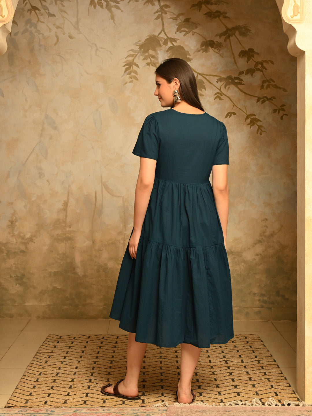 - Description: Tired Solid Pocket Dress is made from high-quality cotton fabric, known for its lightweight and flowing nature. The delicate look adds a touch of femininity and sophistication, making it ideal for special occasions, evenings and vacations.