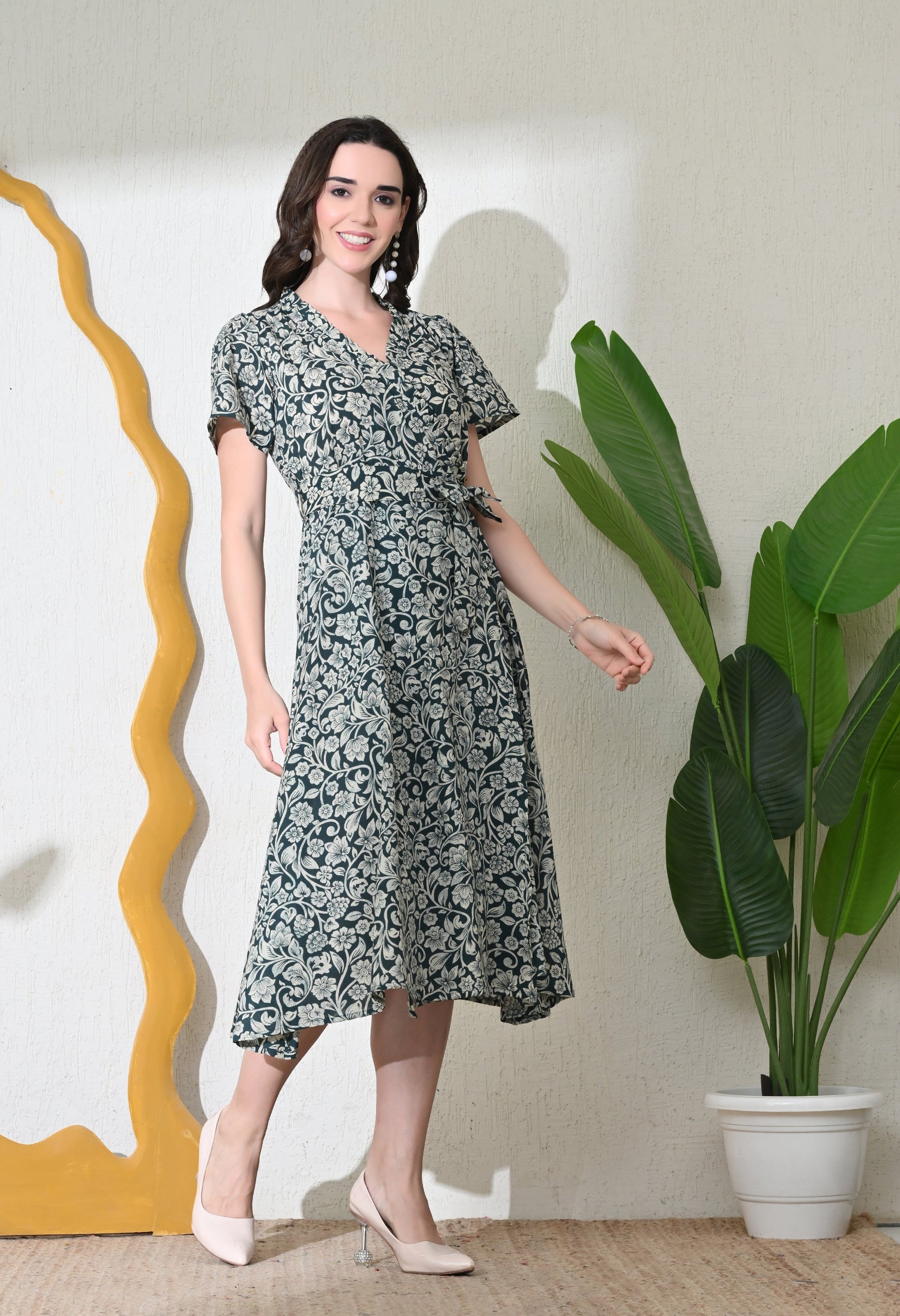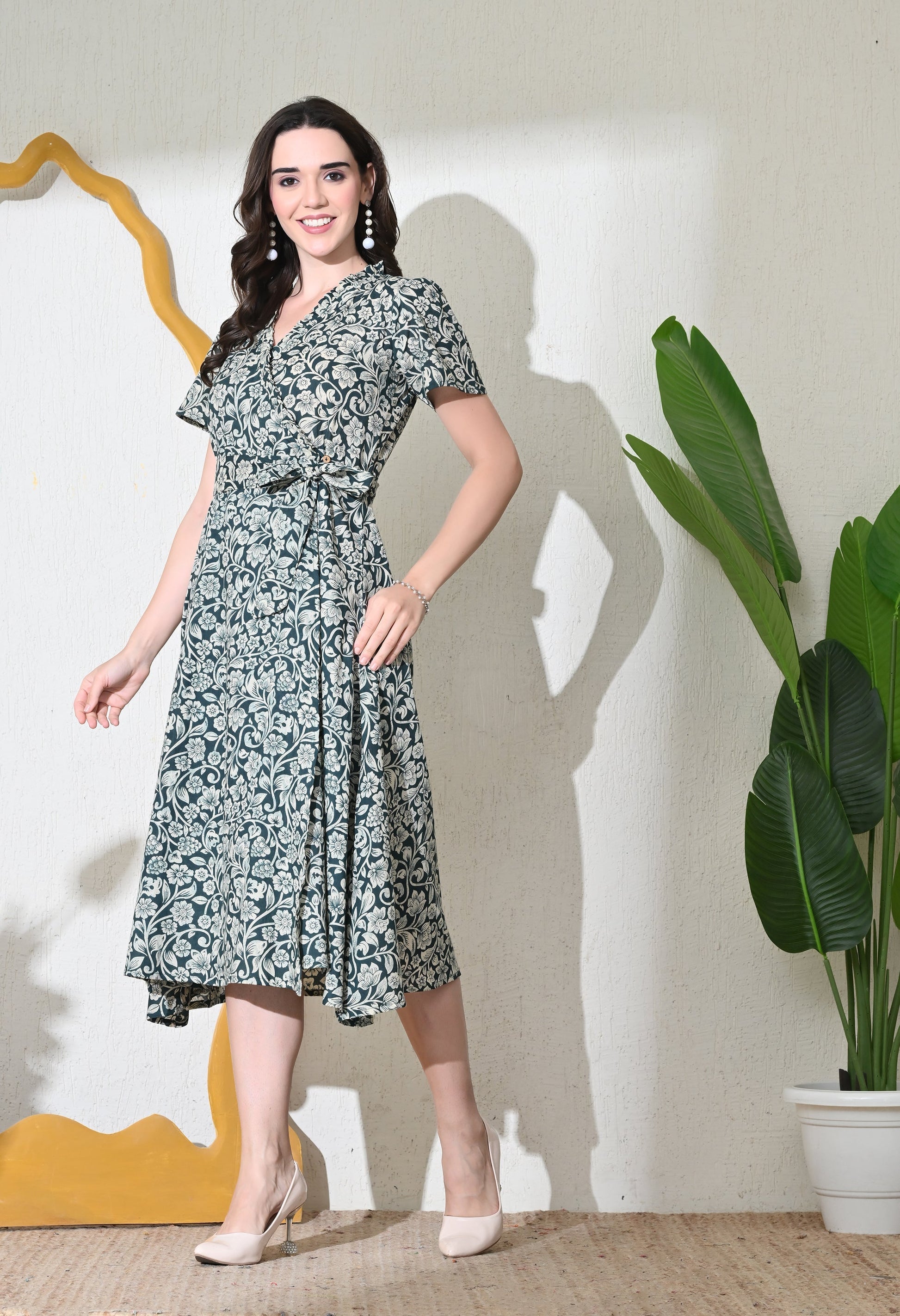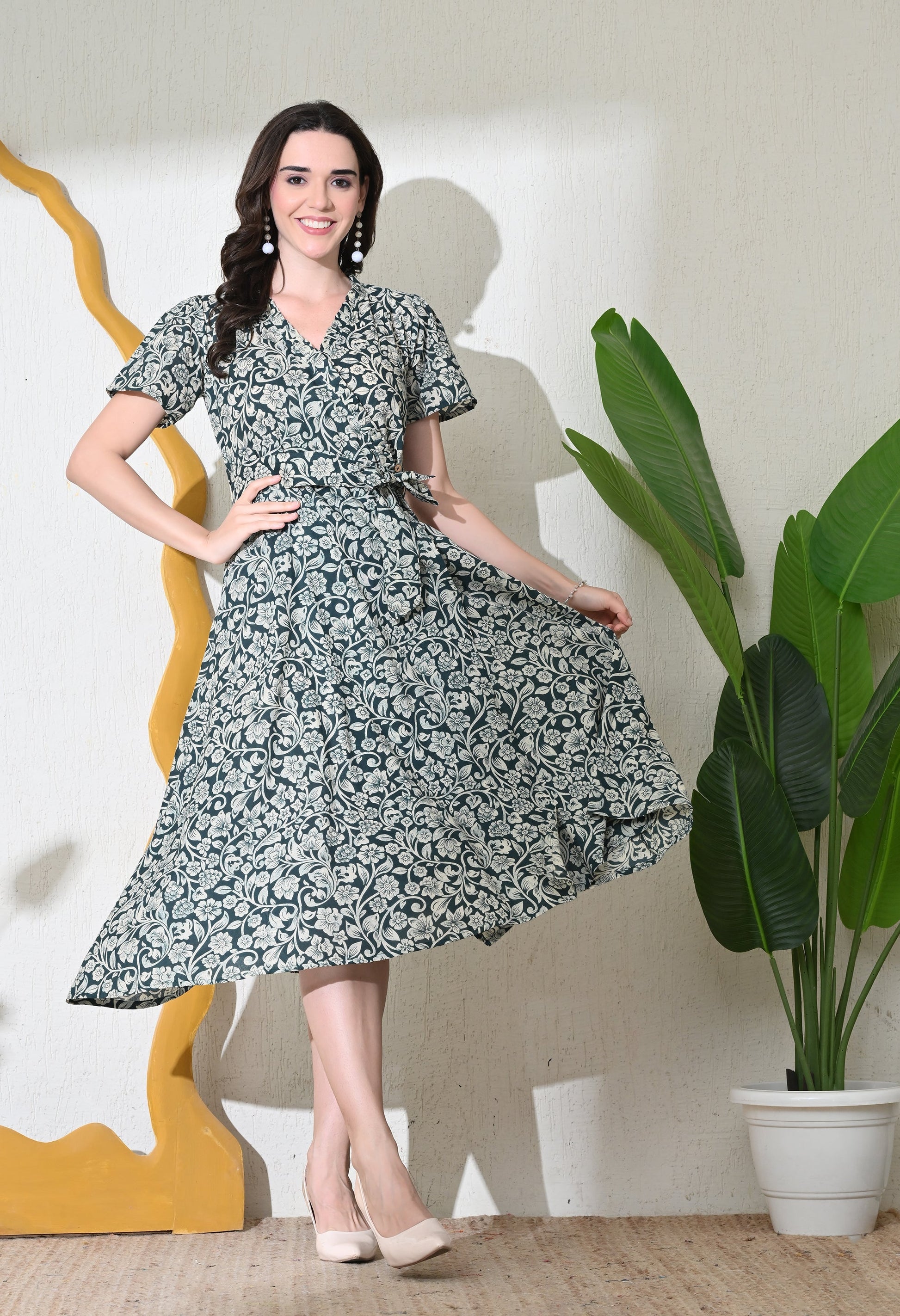 - Description: Kalamkari Cotton Wrap dress with amazing flare and look is a popular choice for a wide range of occasions, from casual outings to more formal events. This dress offer comfort, breathability, and style, making it a versatile addition to any wardrobe.
