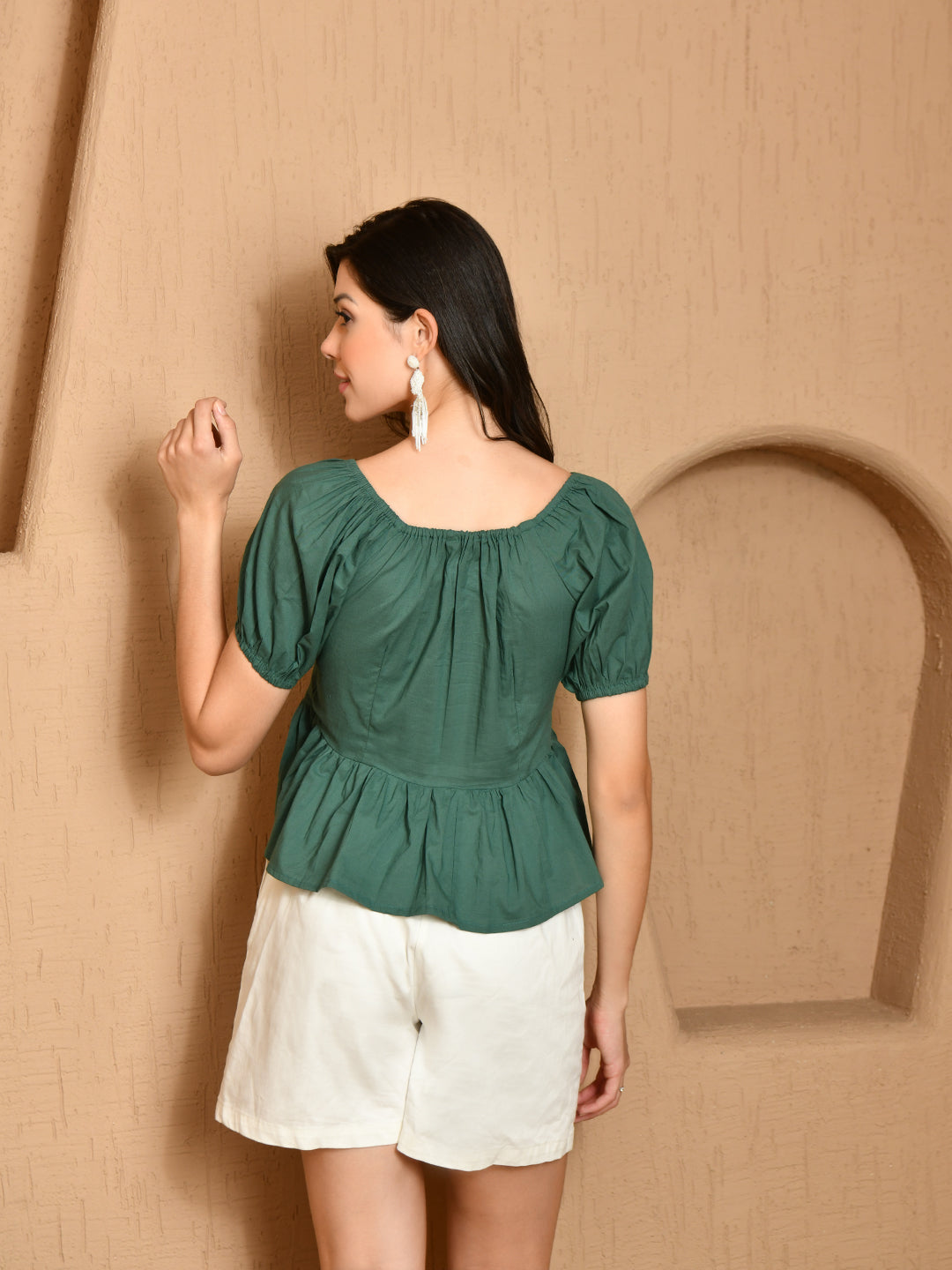 - Description: Our Summer top is a short length, light-colored essential that adds a touch of elegance and comfort to any outfit. Crafted with lightweight and breathable woven material, this top is designed to keep you stylishly cool during those warm summer days and evenings.