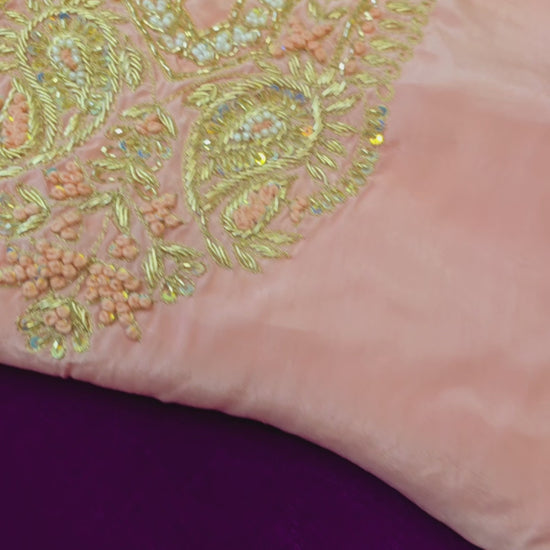 Exclusive Peach Dress Material in Crepe with Zardosi Work
