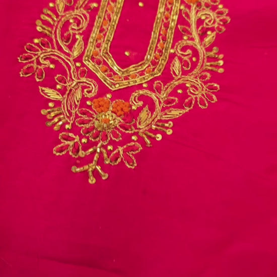Exclusive Rani Pink Dress Material in Dola Silk with Zardosi Work