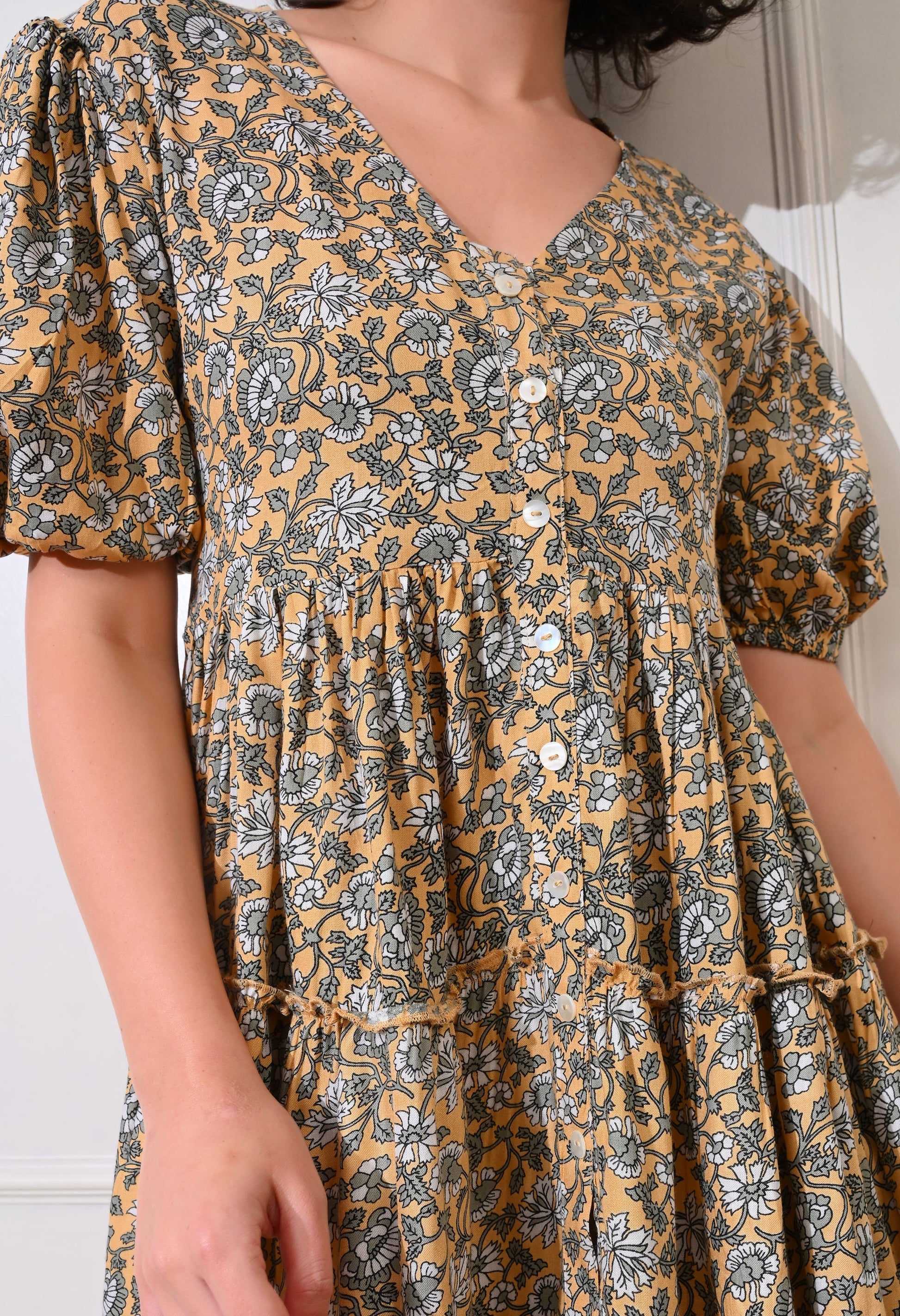 - Description: The Yellow Short Flared Dress is crafted from high-quality fabric, known for its breathability and softness. The beautiful geometric hue adds a touch of vibrancy , perfect for both casual outings and relaxed social gatherings.