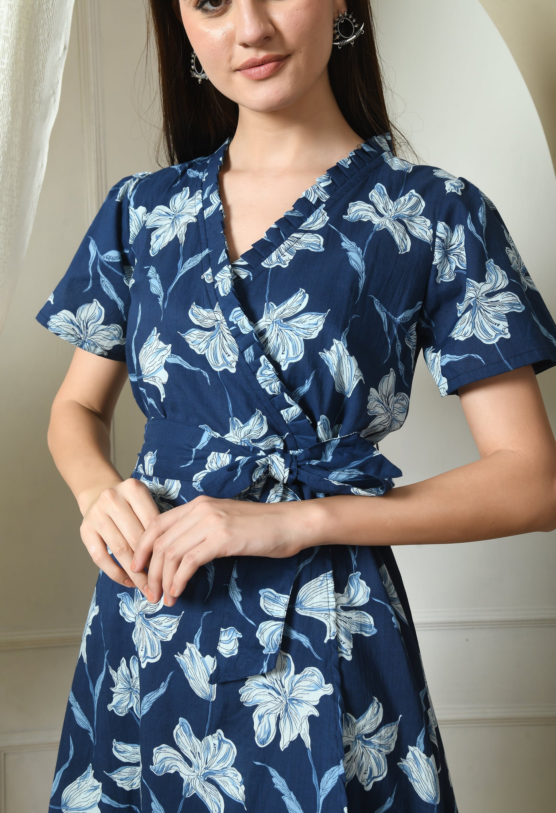 Indigo Floral Wrap Dress