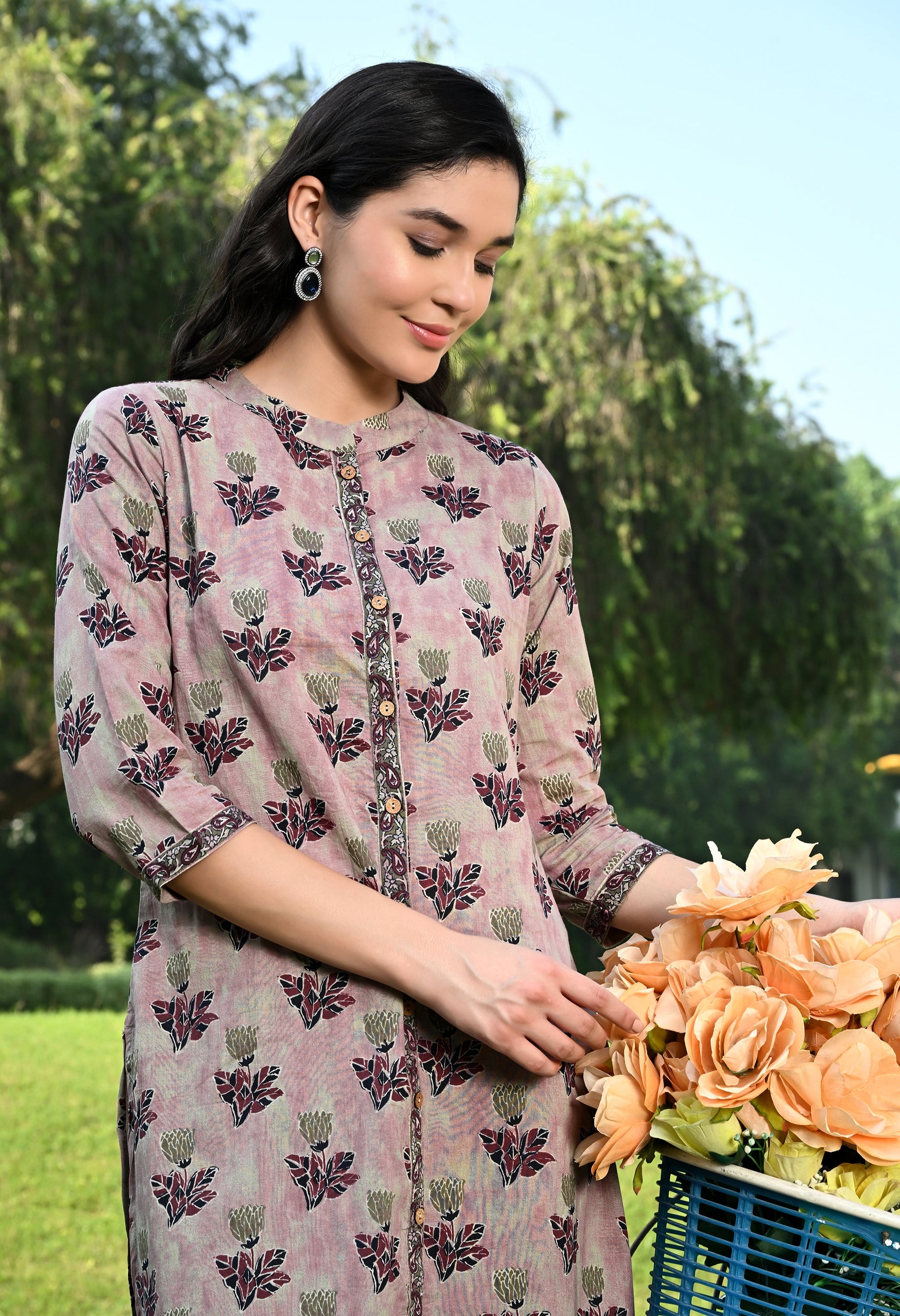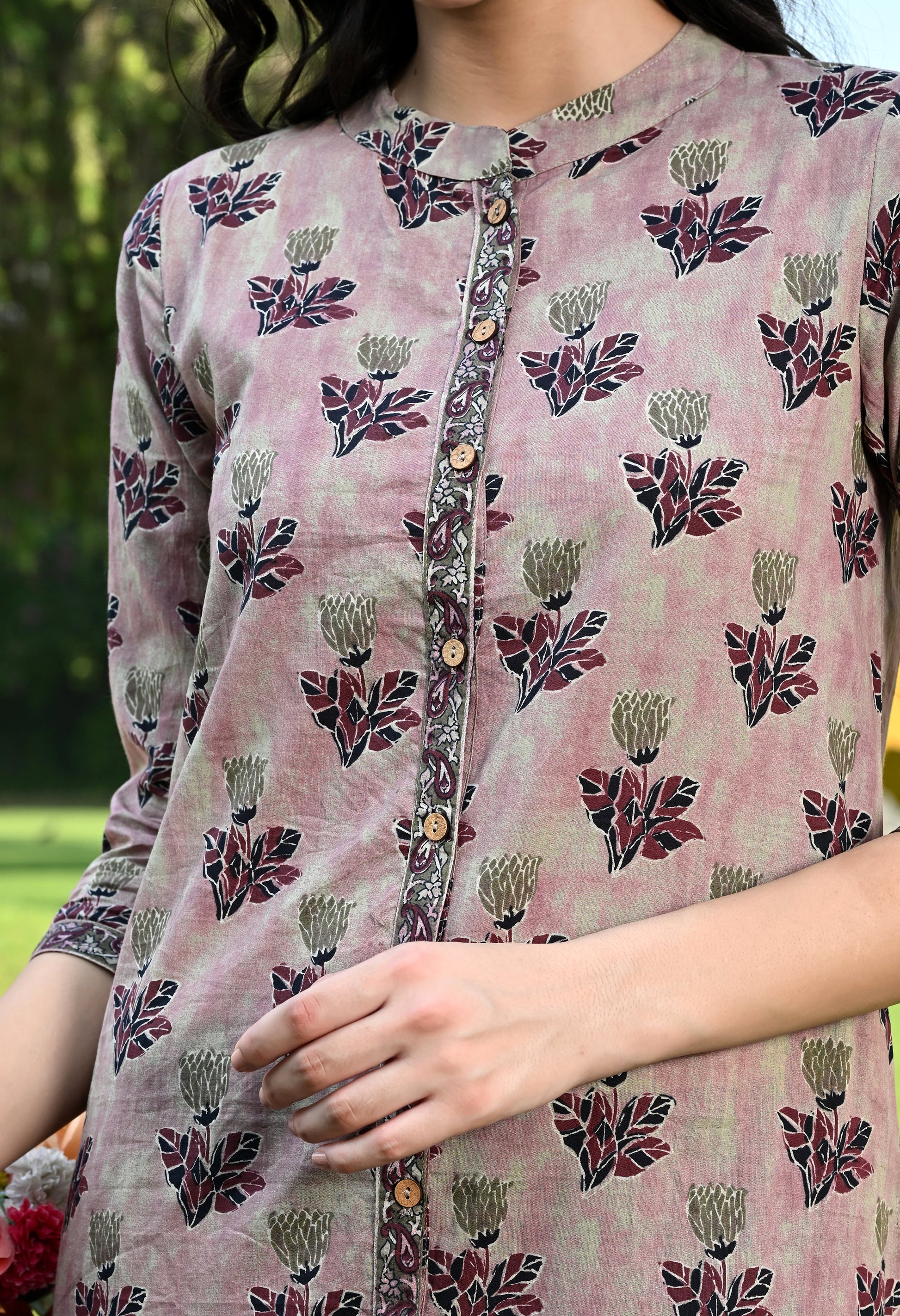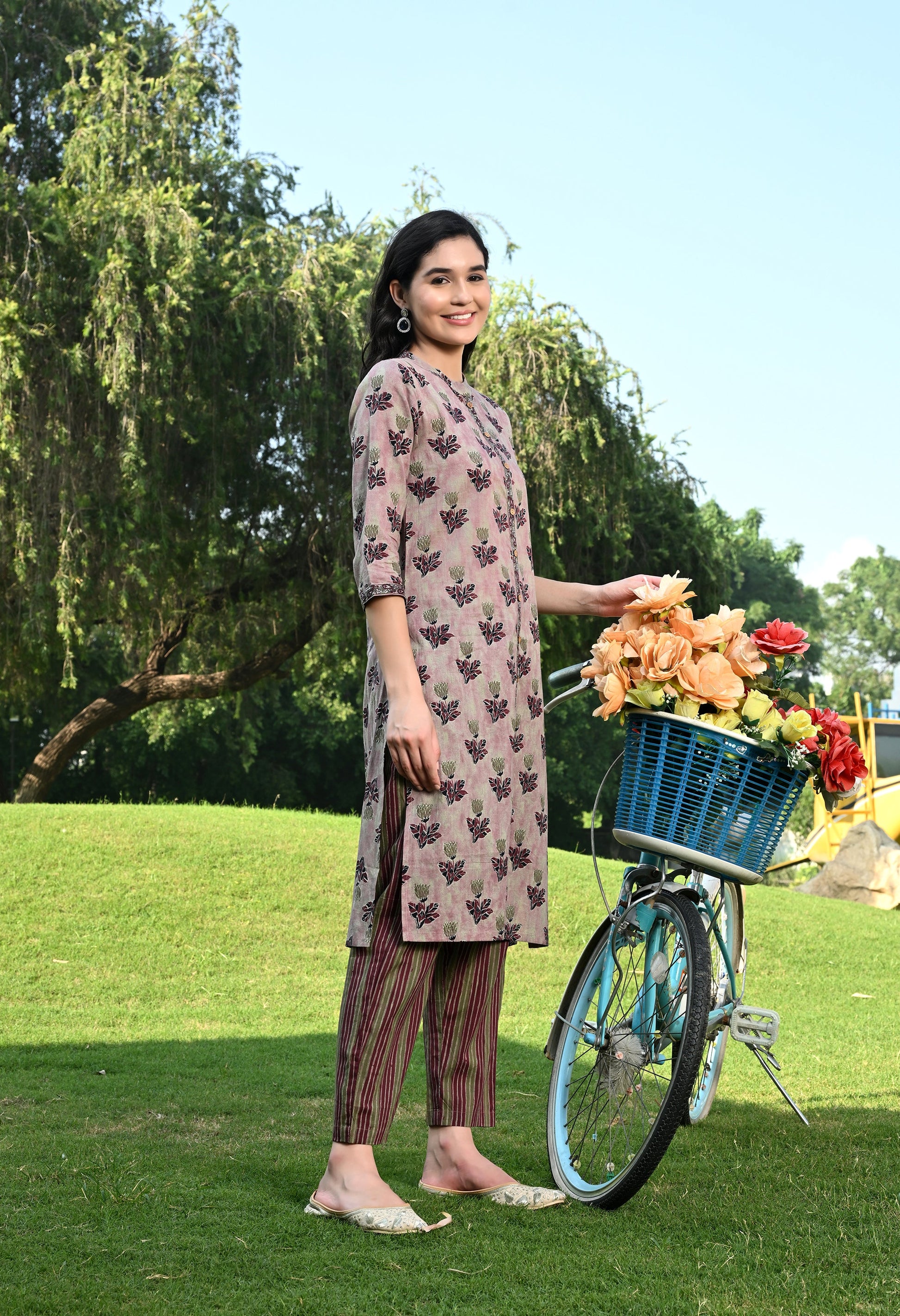 - Description: Jaipur Cotton Bagru Pink and Brown Cotton Kurta pant Set is a Ultimate choice for a glamourous look.This exquisite set is designed to turn heads and make you feel the belle of the ball.