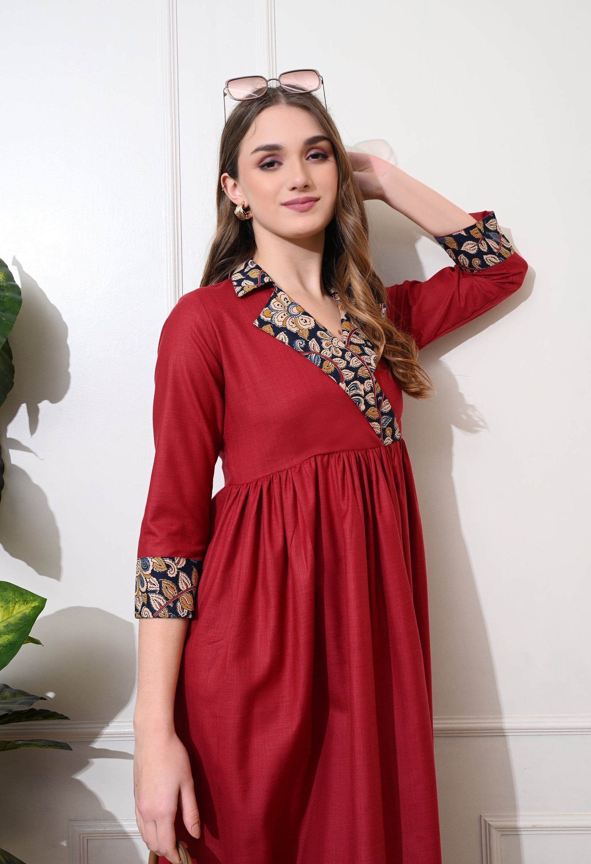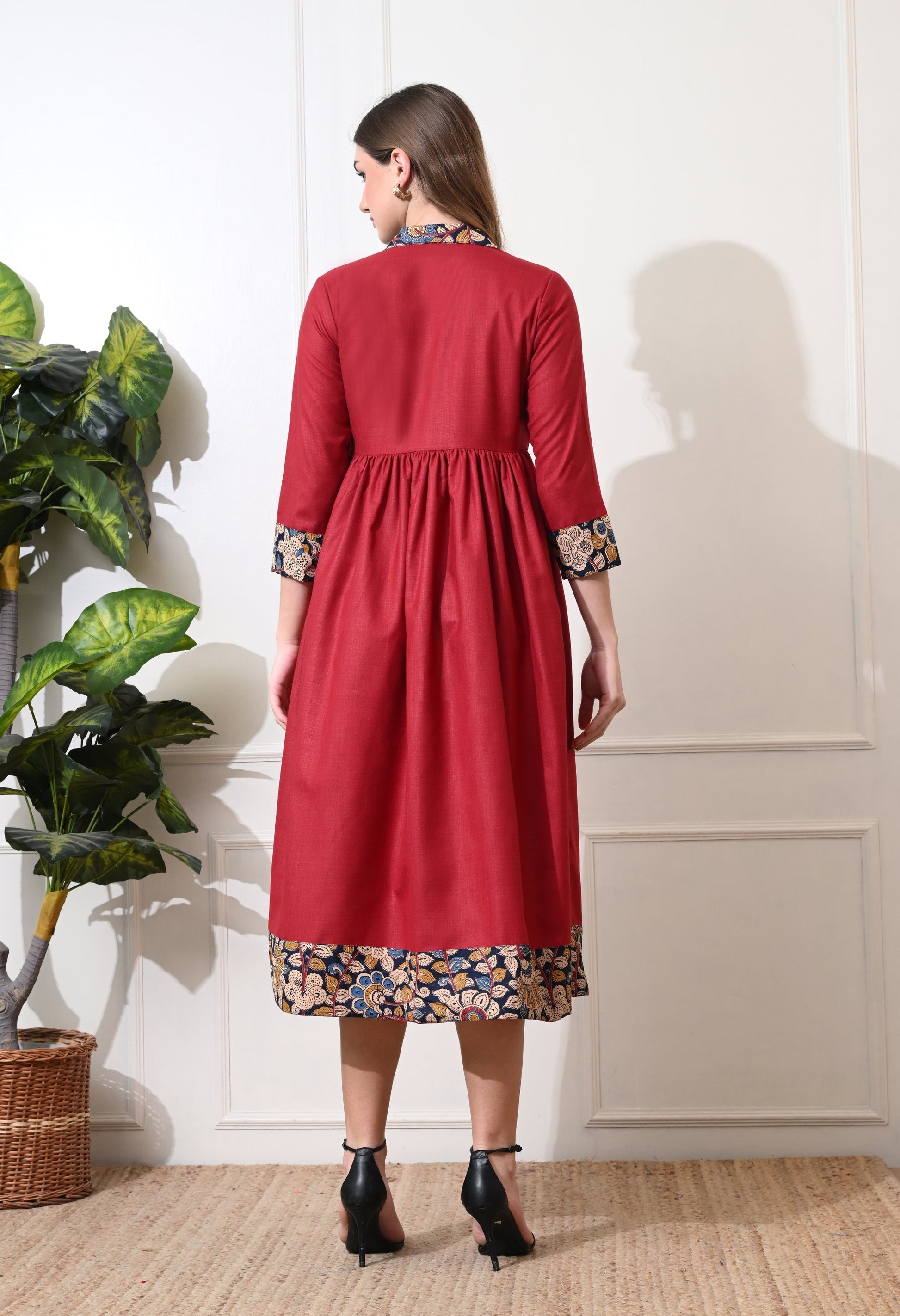 - Description: Look effortlessly stylish wearing this fashionable print and plain combo Cotton Pocket Dress. The flare gives shape and structure to your look and makes you more charming and bold for the day.