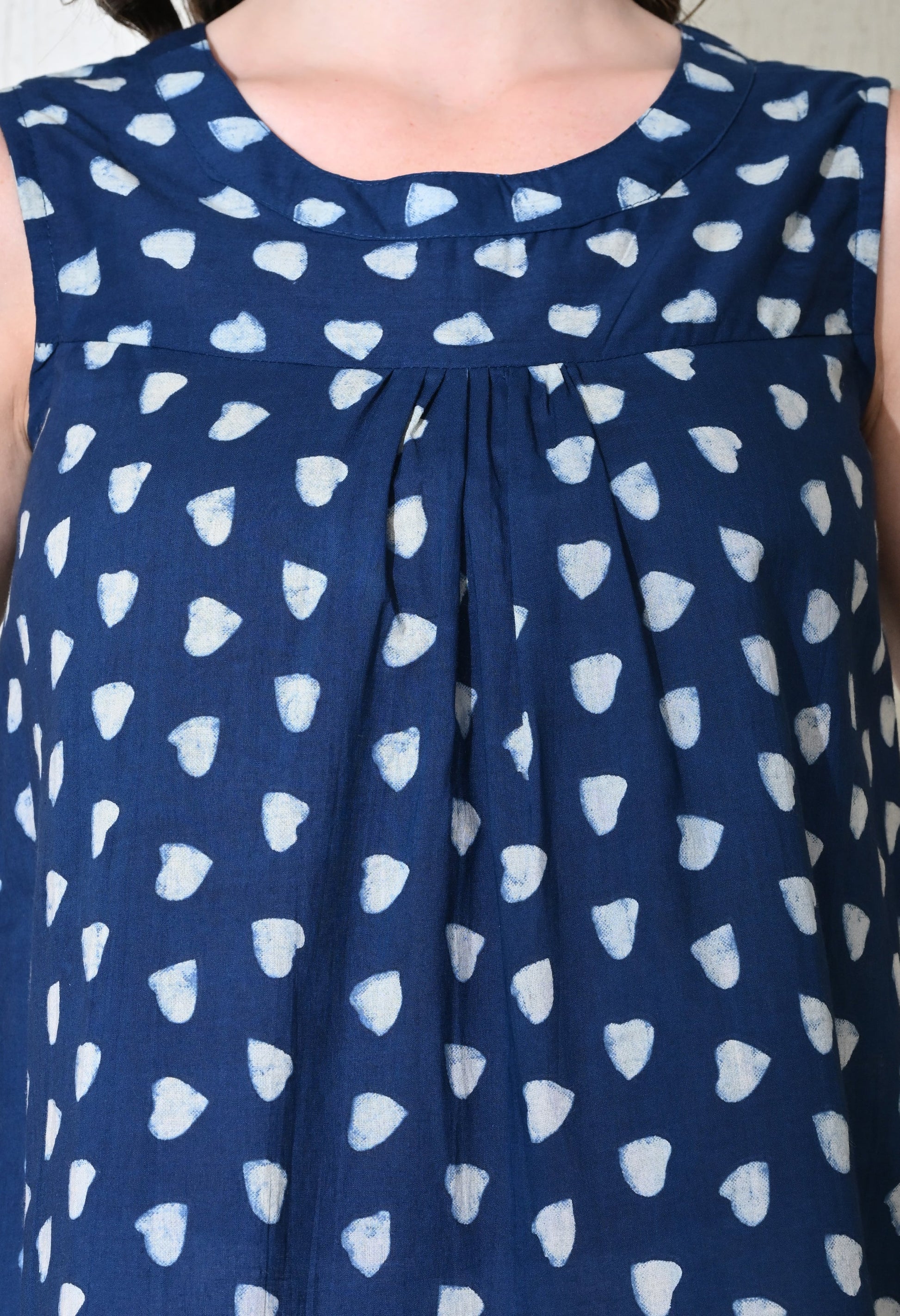 - Description: Ethnic motif Print Top, has A Round Neck with back button, Sleevless Top in mid length wit some gathers in front