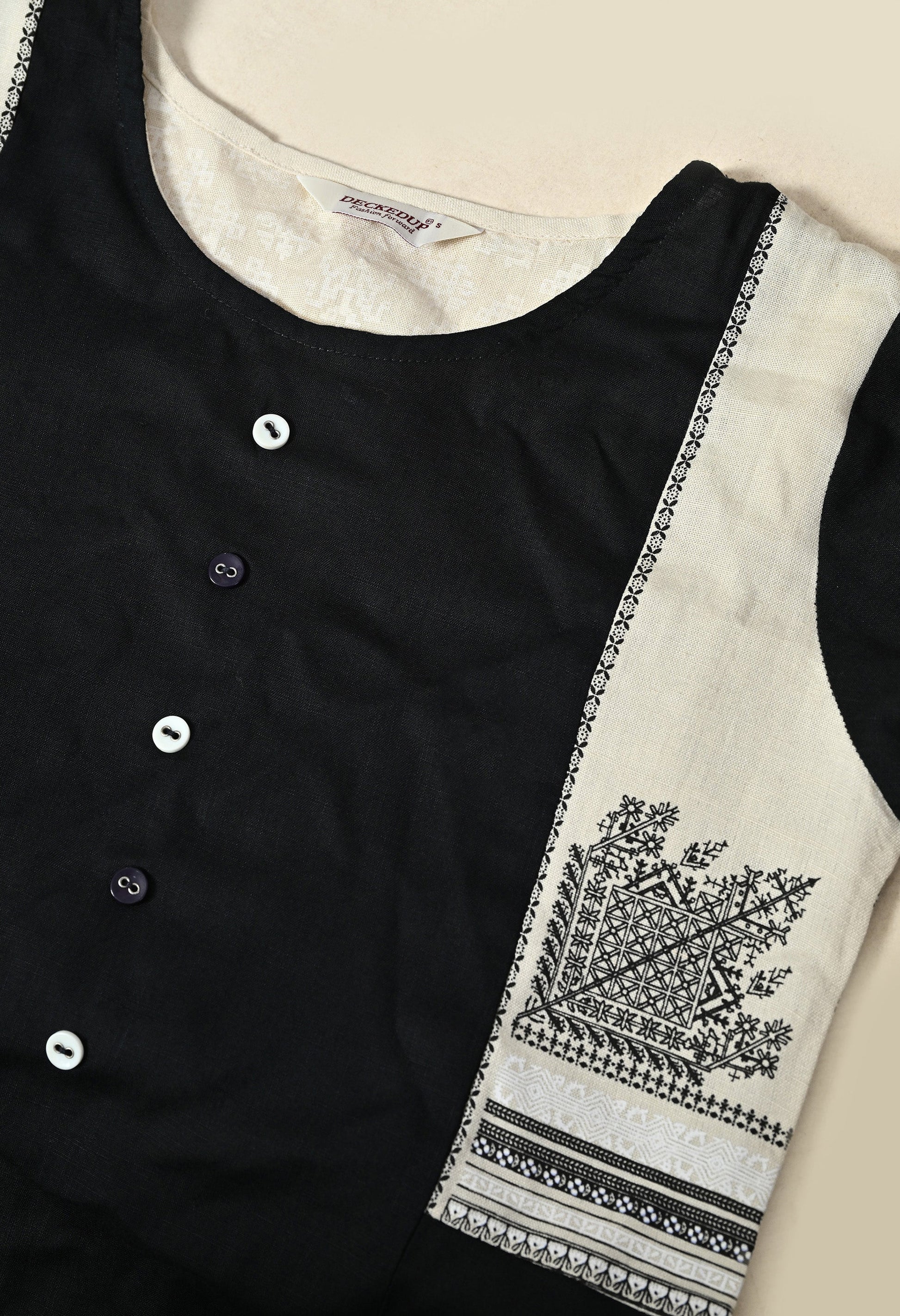 - Description: This Black print straight kurta has round neck, viscose fabric , digital print detail & 3/4th sleeves. Tailored from perfection to make you feel comfortable at shopping day and office.
