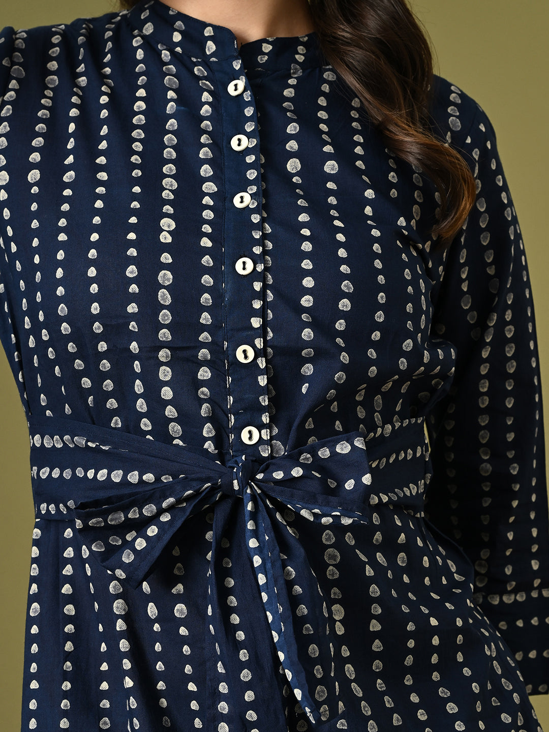 - Description: Embrace the freedom of movement and the chic charm of the Navy Blue Cotton Pocket Dress with Belt. With its flattering silhouette, practical pockets, and comfortable fabric, it's bound to become your favorite go-to dress for any occasion.The sleeveless design allows for easy movement and keeps you cool during warmer days. The round neckline offers a classic and timeless appeal, making it suitable for various occasions and easy to accessorize.