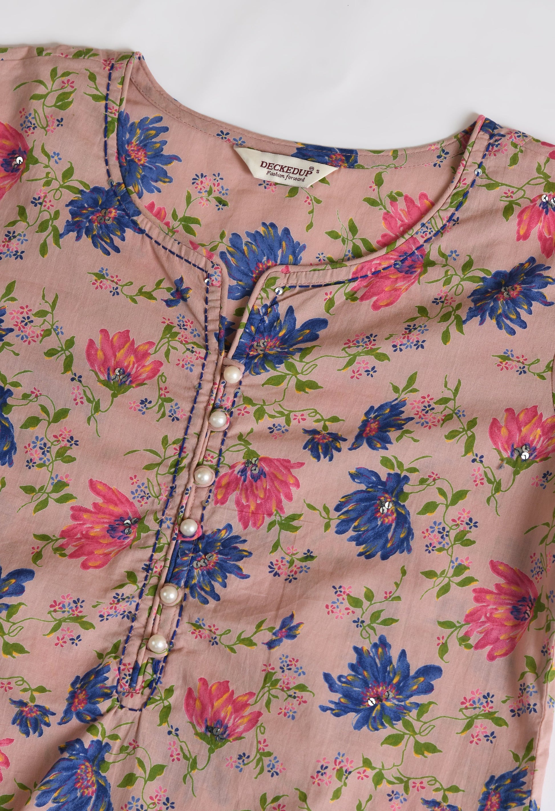 - Description: Women Pink Cotton Kurta Pant set with round neck has bead work on yok and crocet lace and made with comfort cotton . Celebrate your personal style and roots with this elegant kurta and pant set.Deckedup is a ready to wear brand that focuses on a global Indian Women.